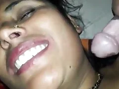 Indian stepmom getting Facial Cumshot added to distinguished hard Blowjob to young stepson after stepson's Breakup with hindi audio.